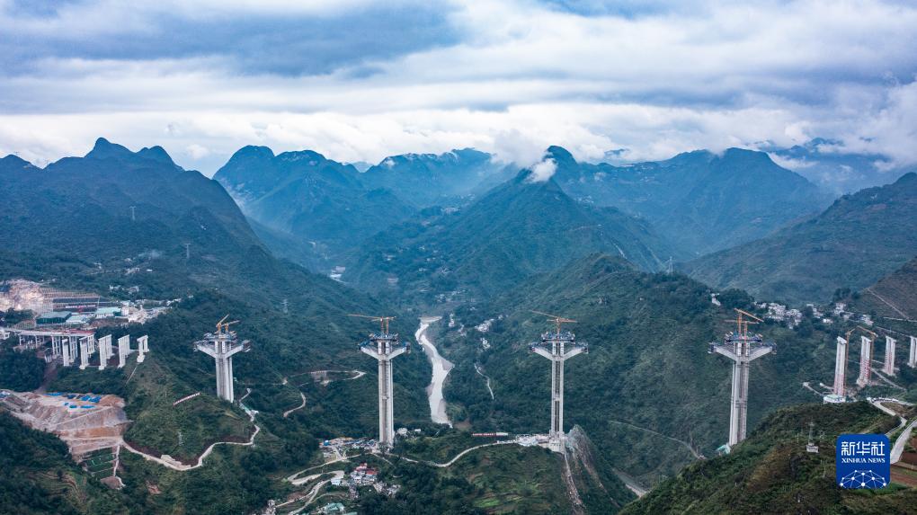 建設中的納晴高速六枝特大橋(10月9日攝,無人機照片)。
