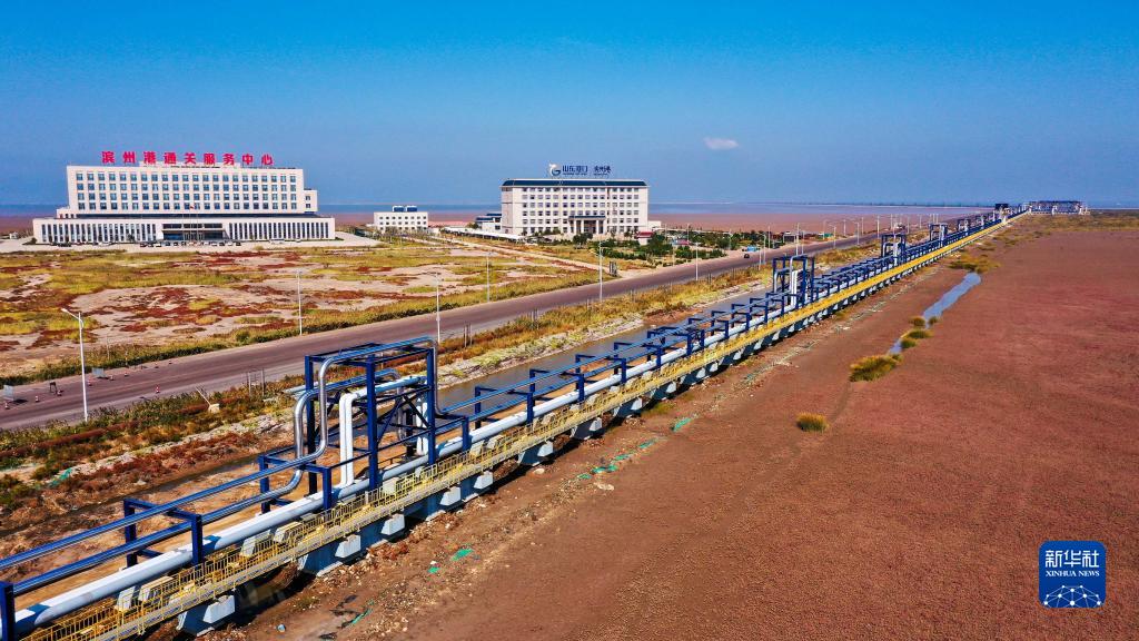 這是濱州市濱州港海港港區管廊支架(一期)工程項目(10月11日攝,無人機照片)。