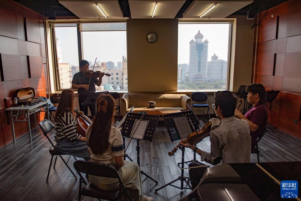 9月14日,中央音樂學院教授于兵(左二)在指導學生練習海頓的弦樂四重奏《云雀》。