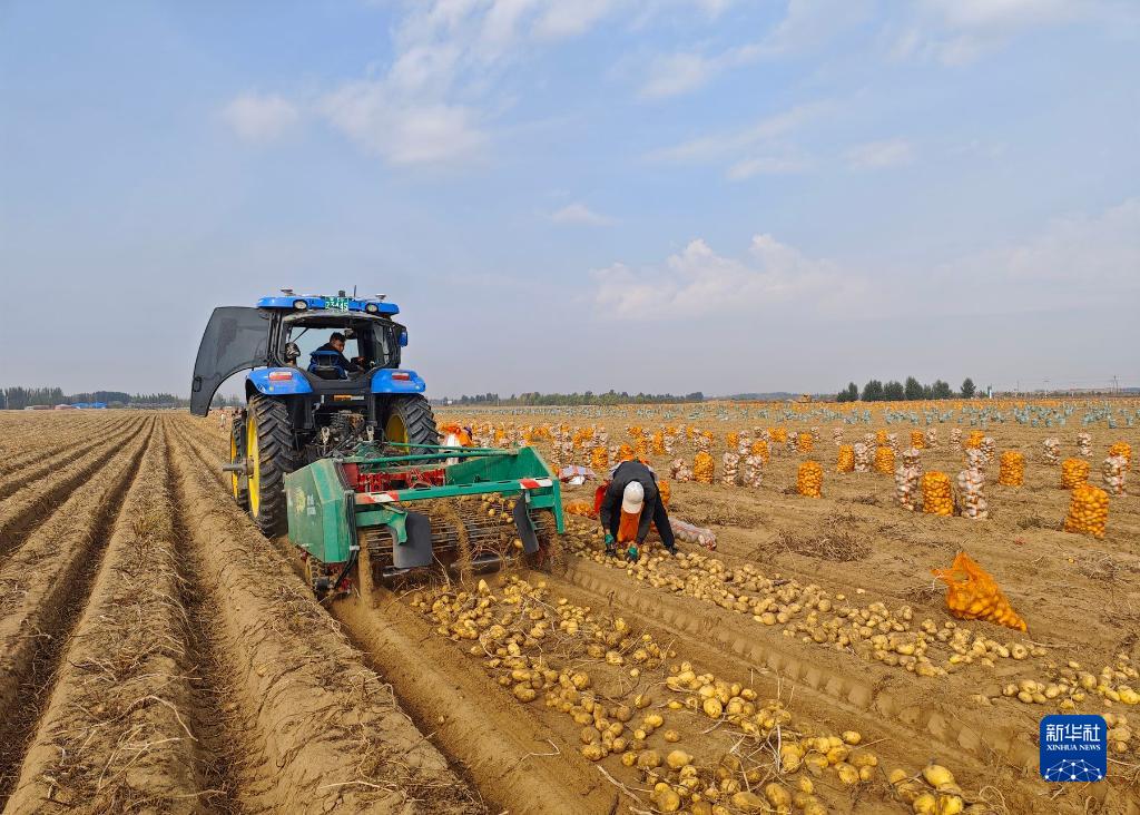 10月11日,內蒙古自治區鄂爾多斯市達拉特旗展旦召蘇木農民收獲土豆。