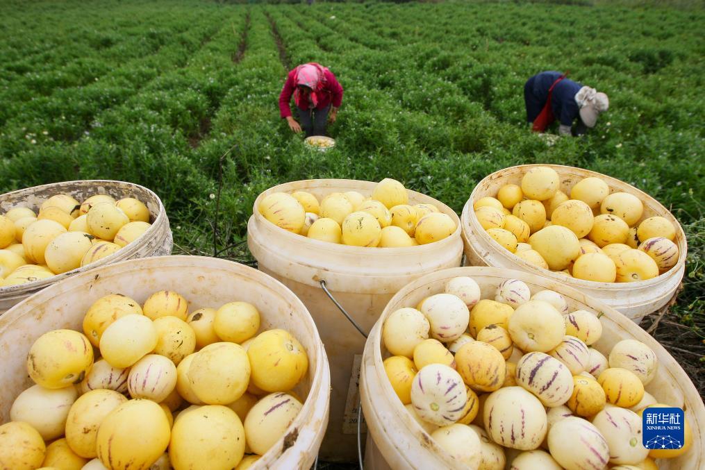 10月11日,在云南省曲靖市沾益區西平街道光華社區的人參果種植基地,務工人員在采摘人參果。