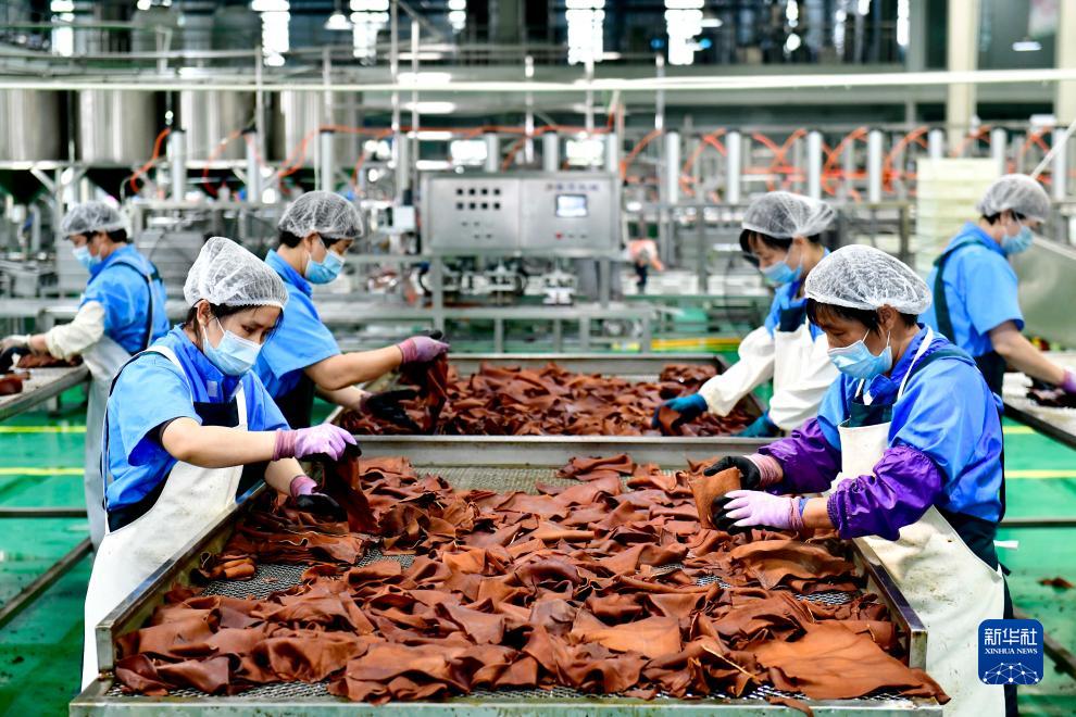 10月11日,山東省惠民縣東方豆制品有限公司的工作人員在加工豆制品。