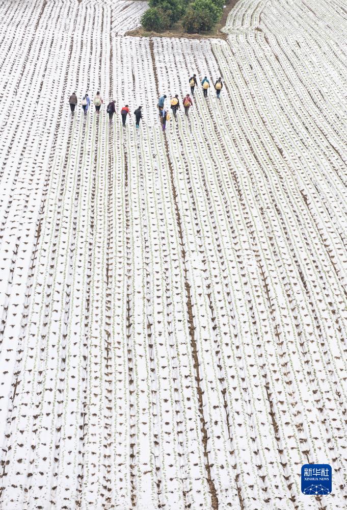 近日,在位于嘉陵江畔的四川省蓬安縣錦屏鎮中壩社區蔬菜種植基地,當地村民開始蘿卜幼苗的秋播秋種,在成壟成行的大地上“破膜露苗”,仿佛在書寫一個個音符,譜寫一支勞動“交響曲”。