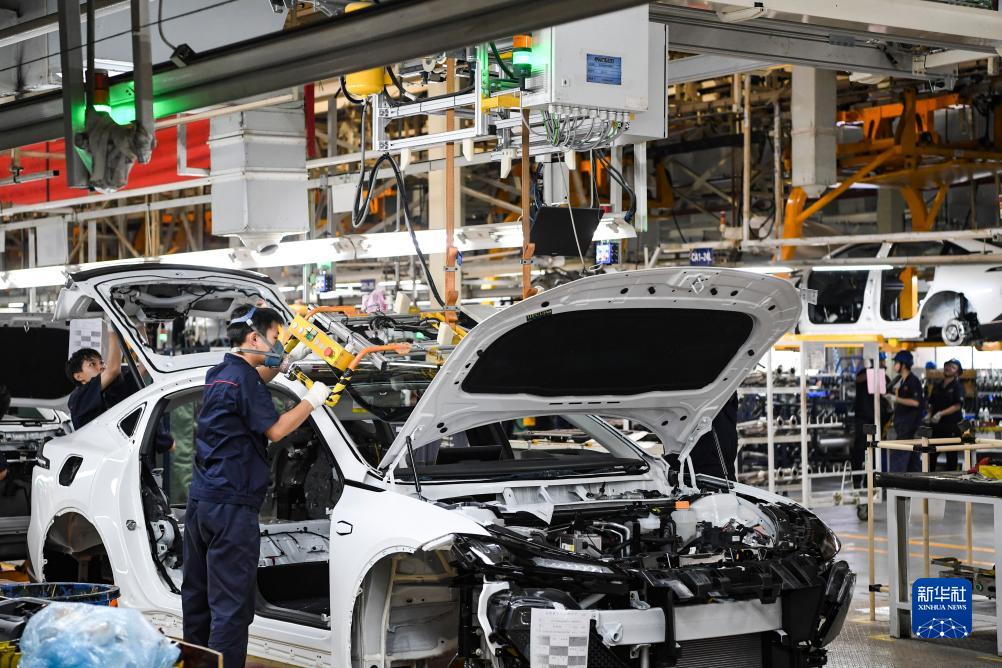 重慶長安汽車股份有限公司智能化工廠作業現場(2022年6月16日攝)。