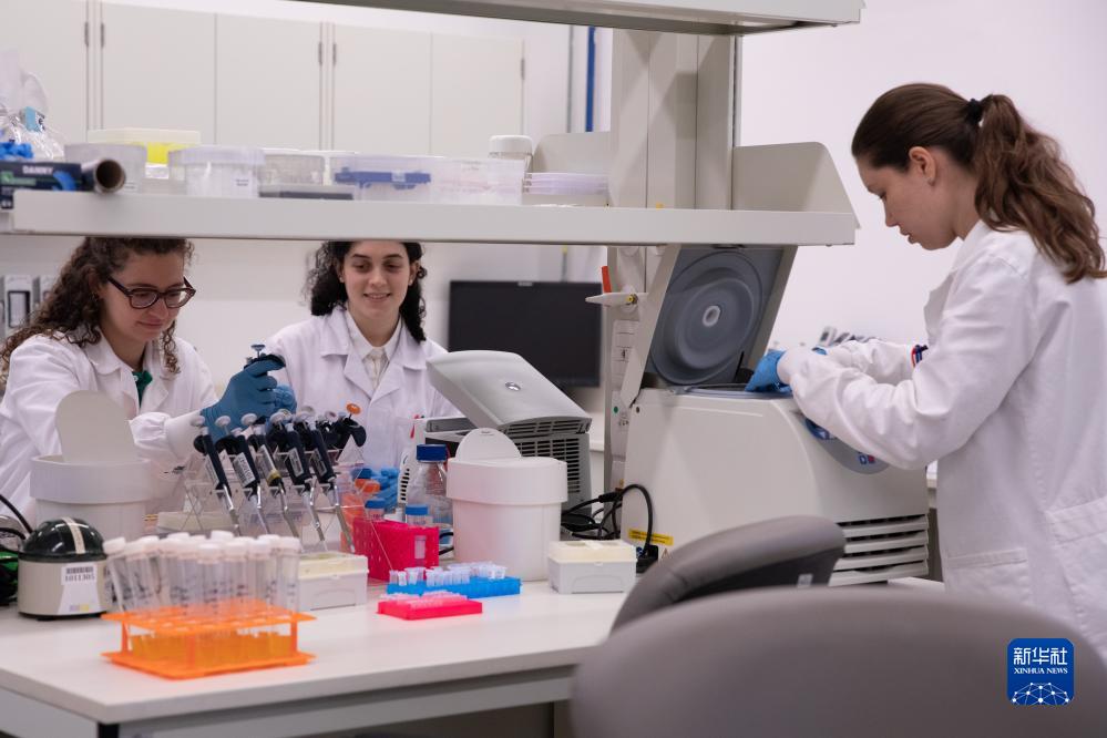 10月11日,科研人員在位于巴西圣保羅州克拉維紐斯的隆平巴西分子生物實(shí)驗(yàn)室內(nèi)工作。