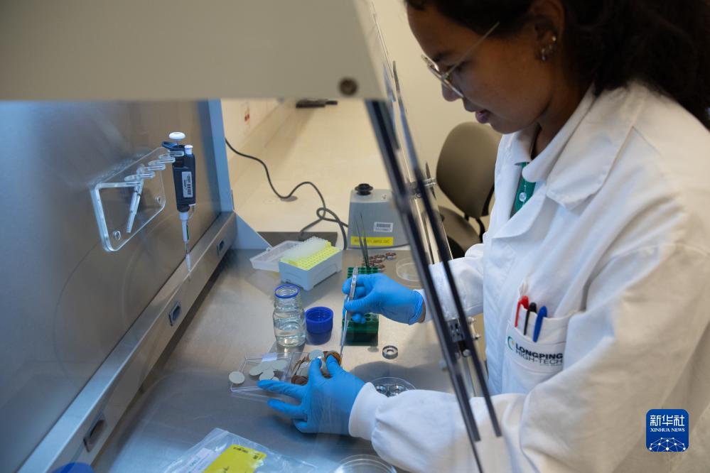 10月11日,一名科研人員在位于巴西圣保羅州克拉維紐斯的隆平巴西分子生物實驗室內工作。