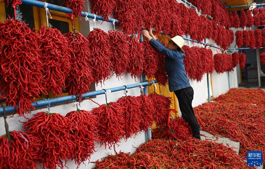 金秋時(shí)節(jié),青海省海東市循化撒拉族自治縣在黃河兩岸種植的萬畝線辣椒迎來豐收,進(jìn)入晾曬季。近年來,循化撒拉族自治縣依托高原地區(qū)冷涼氣候和黃河谷地優(yōu)越的地理?xiàng)l件,大力發(fā)展線辣椒特色產(chǎn)業(yè),促進(jìn)農(nóng)民增收,助力鄉(xiāng)村振興。