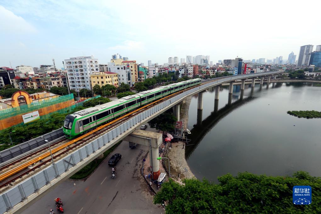 這是2018年8月1日在越南河內拍攝的熱滑測試中的輕軌列車。河內吉靈-河東線輕軌由中國中鐵六局集團有限公司承建,是中越兩國共建“一帶一路”的標志性項目。