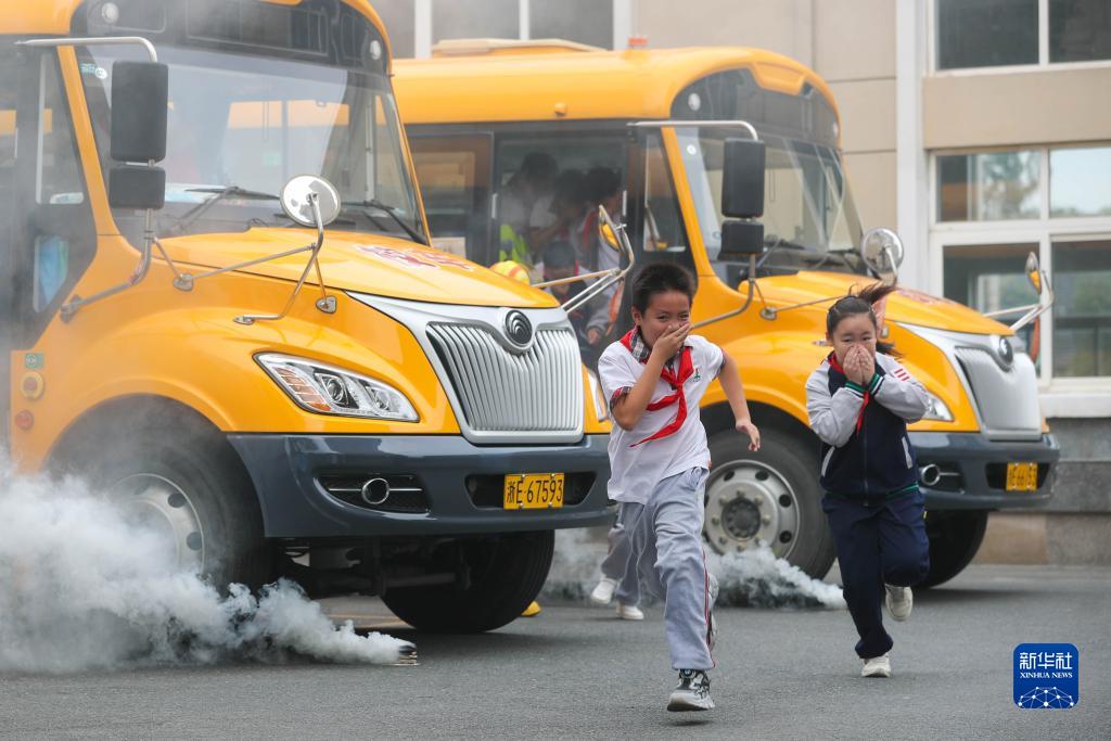10月13日,浙江省湖州市德清縣洛舍鎮中心學校的學生在進行應急疏散演練。