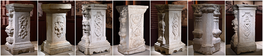 這是展覽展出的7件石柱文物(拼版照片,10月13日攝)。