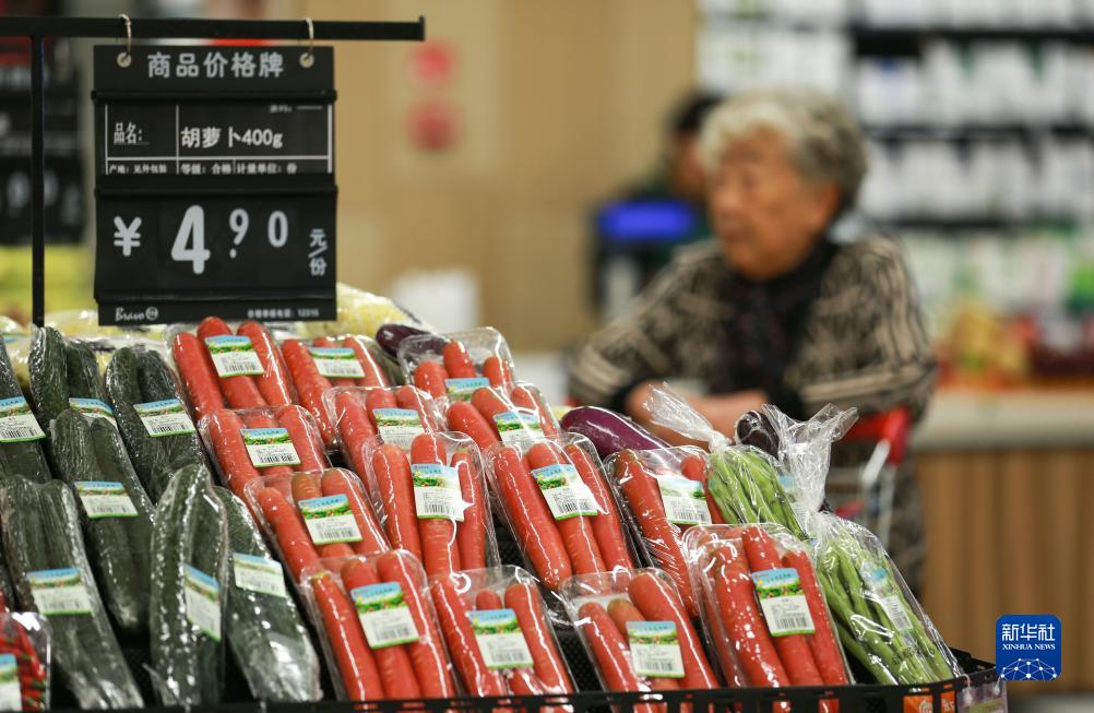 10月13日,市民在貴州省都勻市一超市里選購蔬菜。