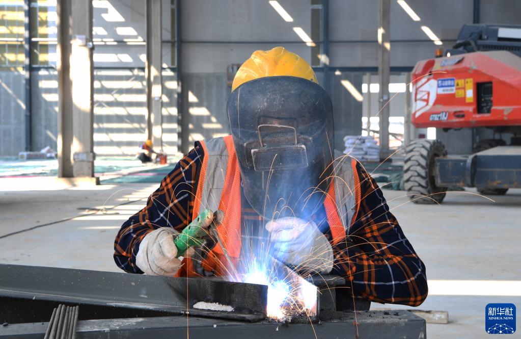10月13日,工人在鄭州國際陸港新址項目工地作業。