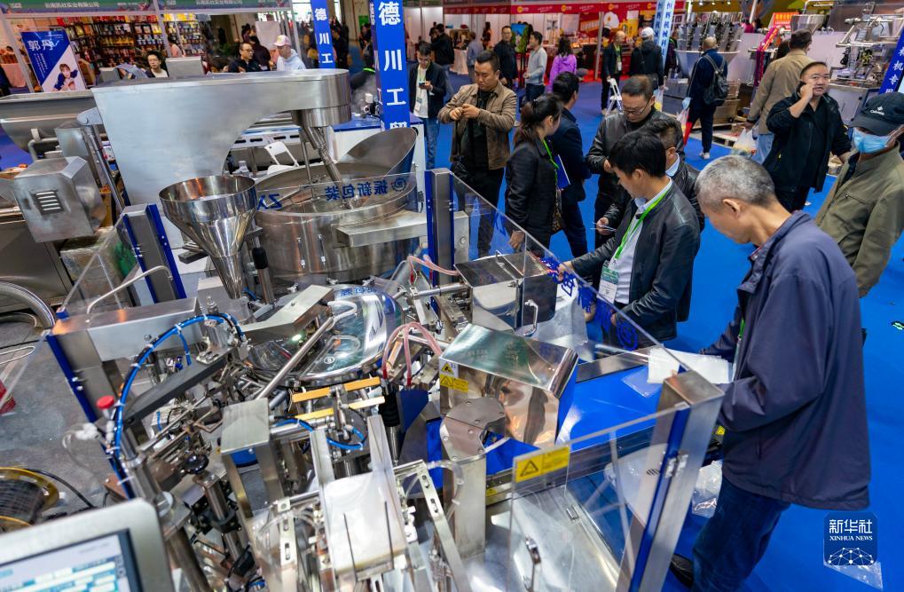 10月13日,參觀者在云南國際餐飲美食暨預(yù)制菜產(chǎn)業(yè)博覽會上參觀一臺食品包裝設(shè)備。