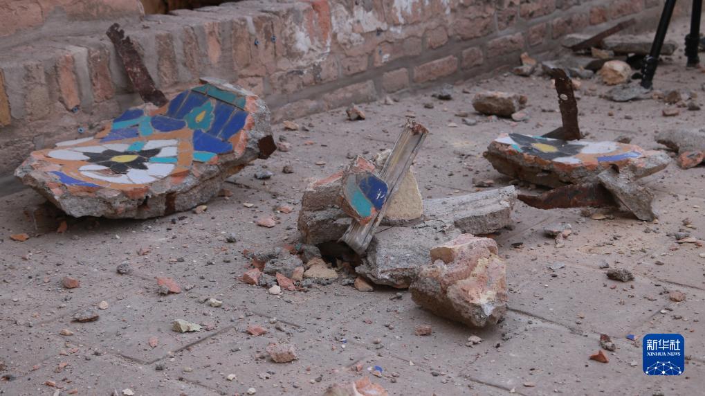 這是10月12日在阿富汗赫拉特省拍攝的赫拉特大清真寺的建筑碎片。