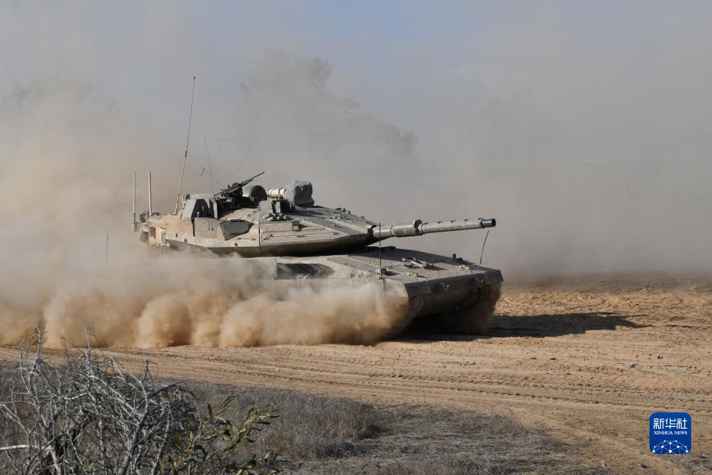 這是10月13日在加沙邊境以色列一側(cè)拍攝的集結(jié)的以軍裝甲車。