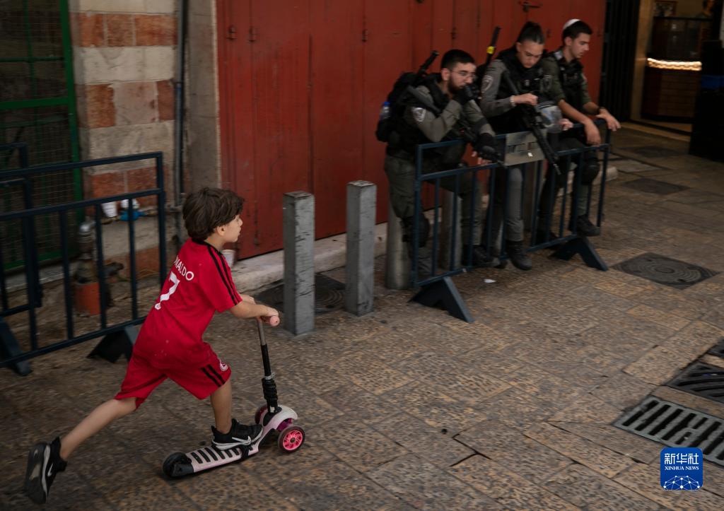 10月13日,警察在耶路撒冷老城內(nèi)警戒。