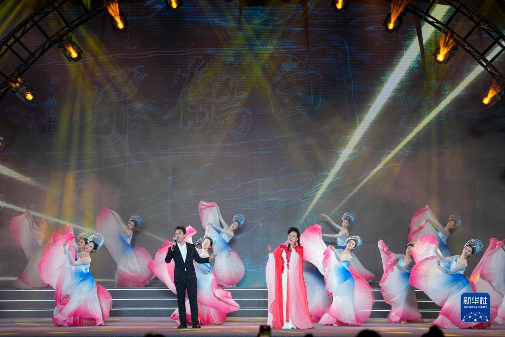 10月13日,在重慶涪陵舉辦的2023白鶴梁旅游文化節開幕式上,演員表演歌舞。