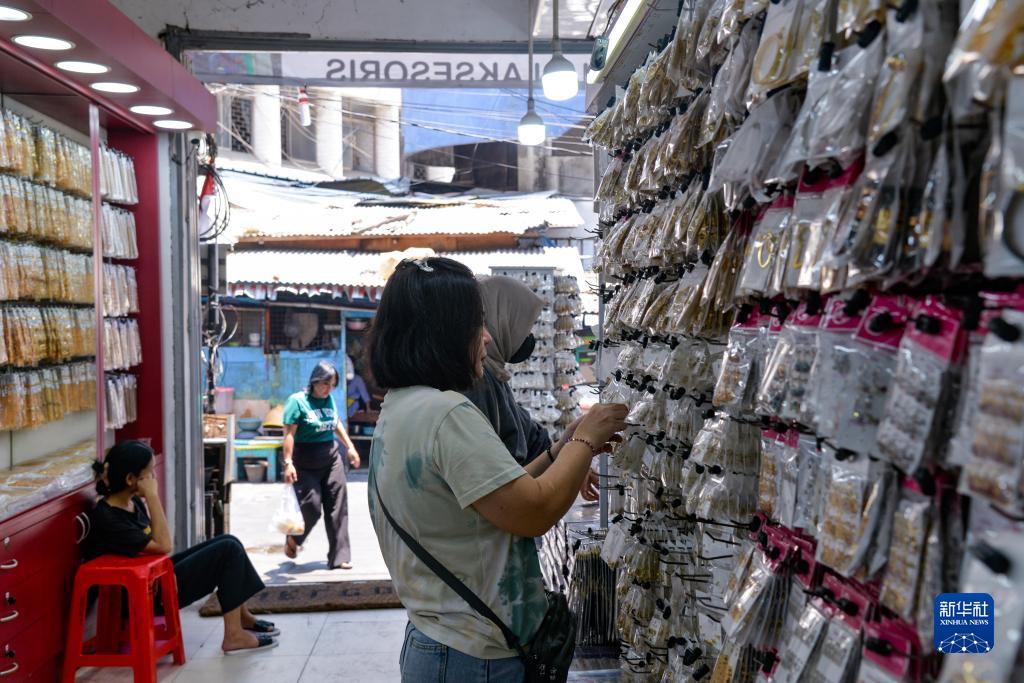 顧客在印度尼西亞雅加達一家小商品批發店選購商品。這家店鋪的小商品多是從中國寧波舟山港運送至印尼雅加達丹戎不碌港的貨物(10月13日攝)。