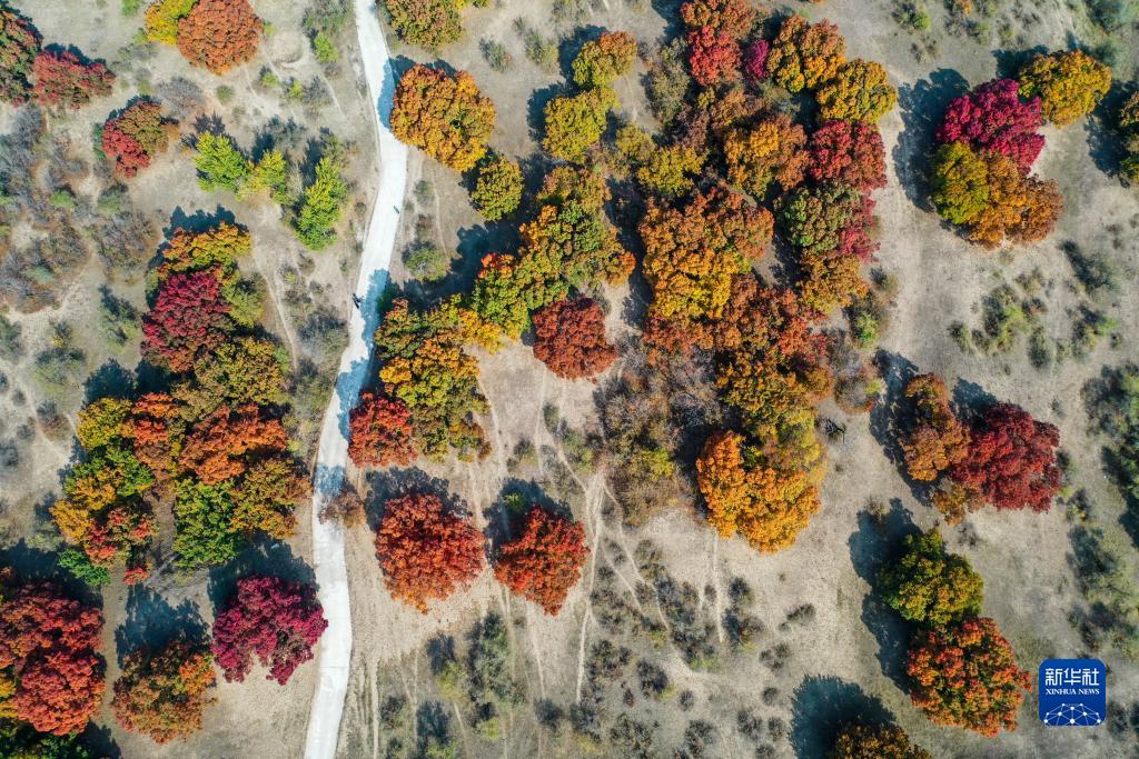 這是10月14日拍攝的烏旦塔拉五角楓森林公園美景(無人機照片)。