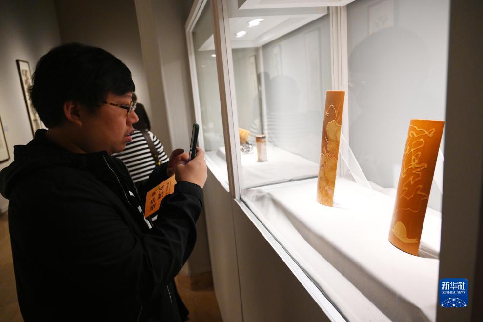 當日,“虛節凌云——徐秉方藝術展”在中國美術館開幕。徐秉方是國家級非物質文化遺產常州留青竹刻技藝代表性傳承人。本次展覽展出徐秉方先生和其父親、女兒三代人所作竹刻、書畫、壺刻精品百余件,展覽將持續至10月24日。
