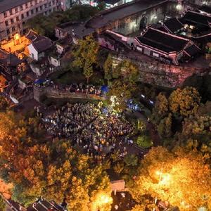 10月13日拍攝的貴陽市文昌閣路邊音樂會現(xiàn)場(無人機照片)。