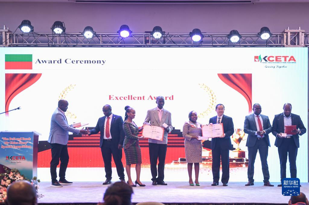 這是10月13日在肯尼亞首都內(nèi)羅畢拍攝的演講比賽頒獎(jiǎng)現(xiàn)場(chǎng)。