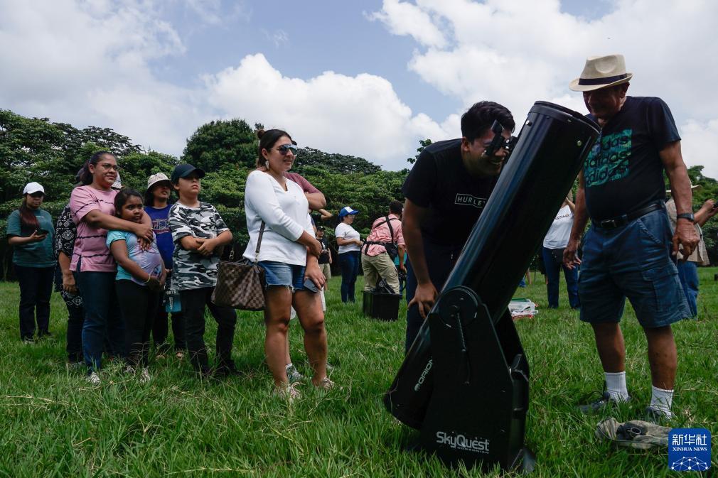10月14日,人們在薩爾瓦多首都圣薩爾瓦多觀看日食。