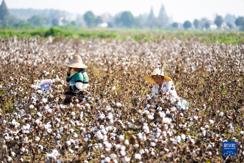 金秋十月,湖南省益陽市南縣種植的4萬余畝棉花相繼進入采收季,當地棉農趁著晴好天氣采摘棉花,田間地頭一片忙碌的景象。