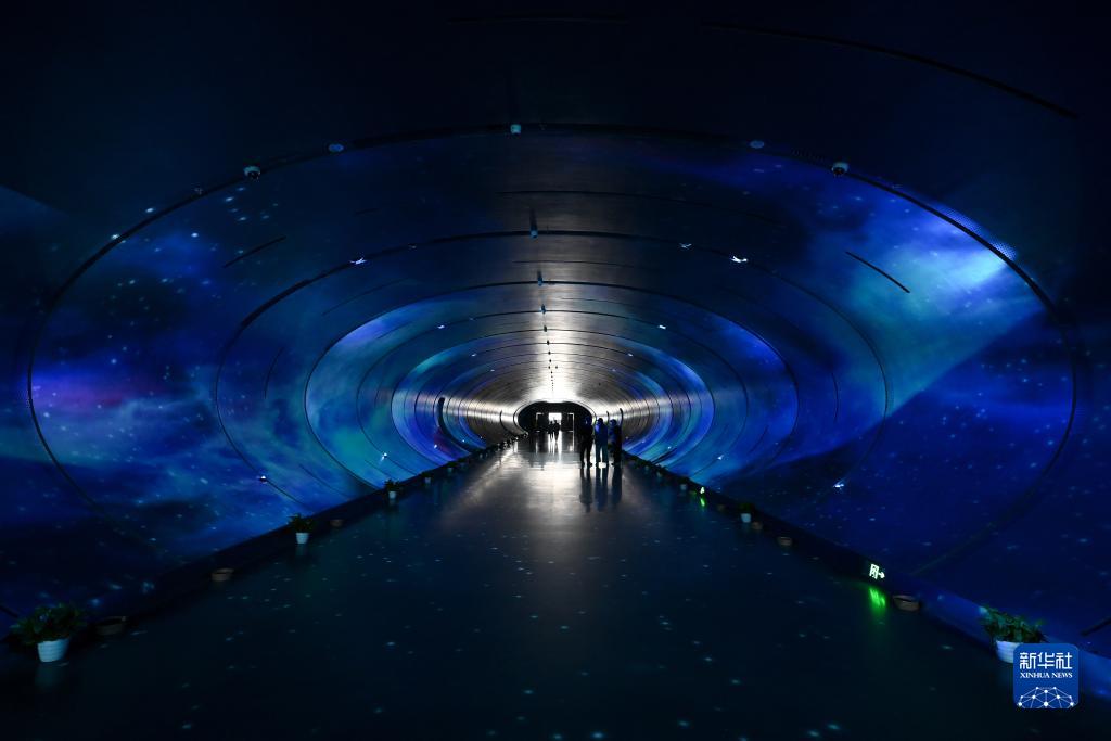 這是10月14日在成都科幻館內(nèi)拍攝的地下一層步行通道“時(shí)空隧道”。