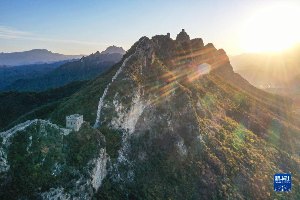 朝陽下的司馬臺長城(無人機照片,10月15日攝)。