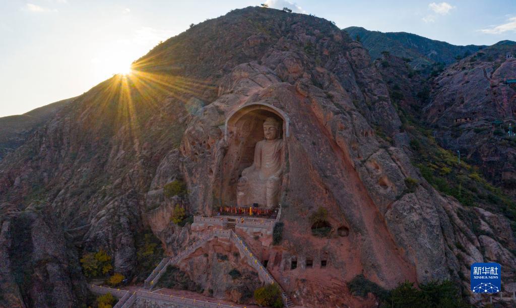 這是10月14日拍攝的須彌山石窟景區(無人機照片)。