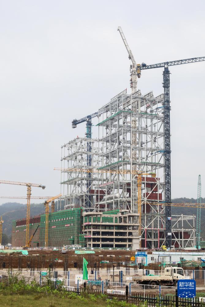 這是10月13日在甘肅省平涼市靈臺縣拍攝的靈臺電廠項目建設現場。