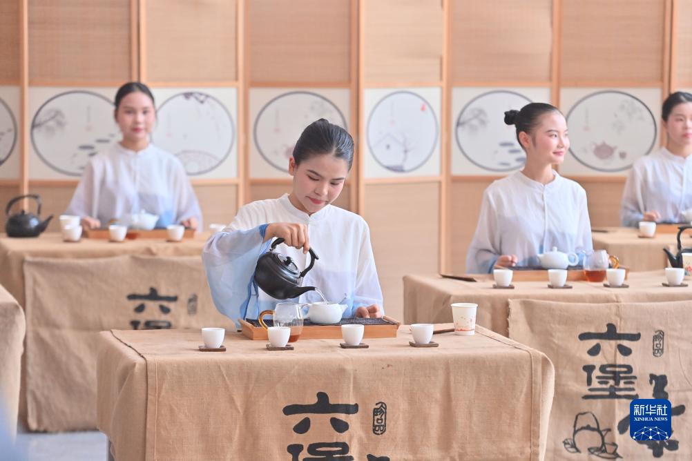 10月15日,在梧州市蒼梧縣六堡鎮(zhèn)六堡茶文化廣場,工作人員進行茶藝表演。