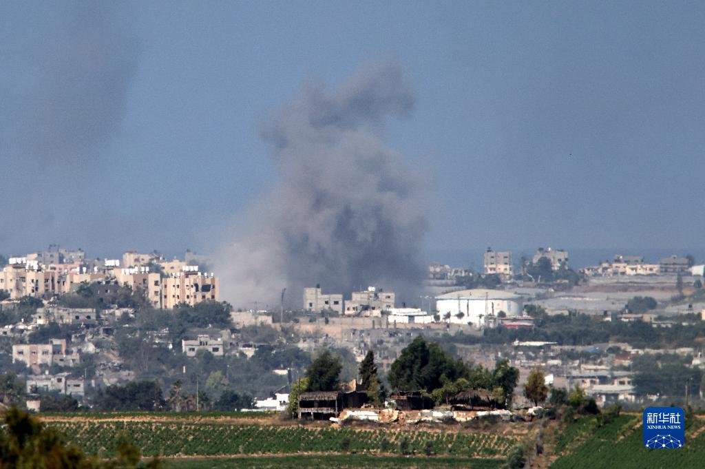 這是10月15日在加沙邊境以色列一側拍攝的以色列轟炸加沙地帶后升起的濃煙。