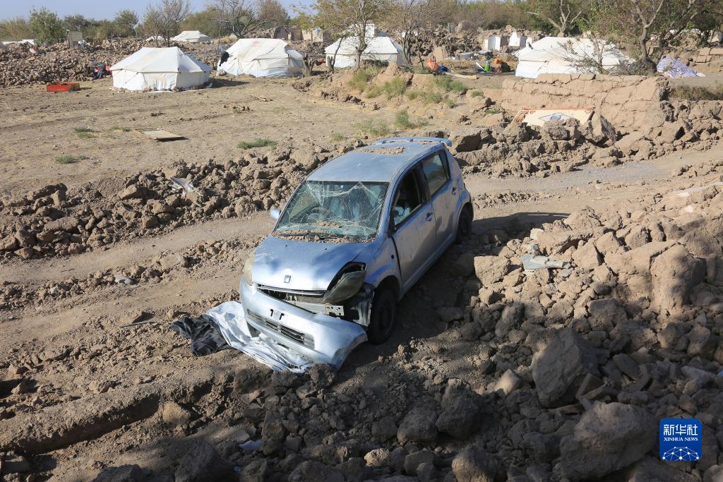 這是10月16日在阿富汗西部赫拉特省拍攝的地震中損毀的汽車。
