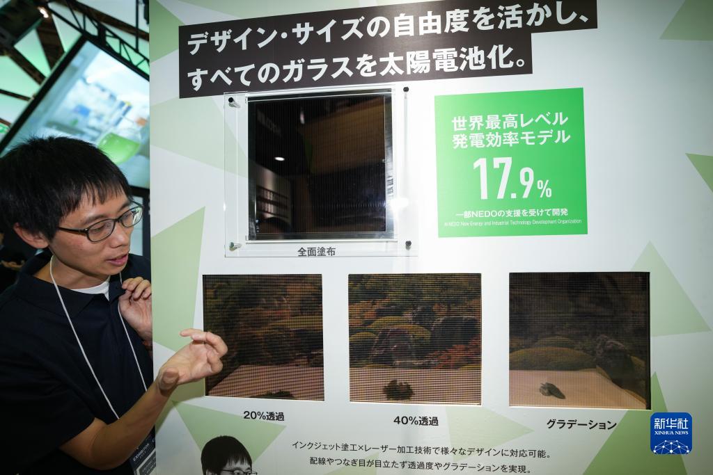 10月16日,在日本千葉舉行的高新技術博覽會媒體導覽日上,松下展區工作人員向媒體介紹太陽能電池。
