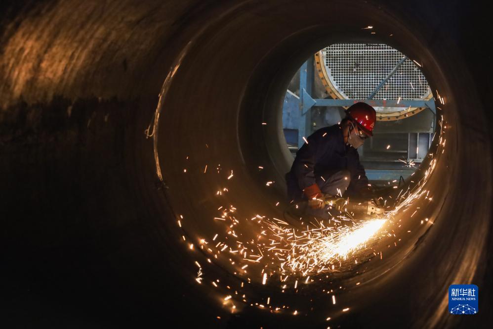 10月16日,工人在蘭州新區(qū)蘭石集團(tuán)高端裝備產(chǎn)業(yè)園的生產(chǎn)車間作業(yè)。