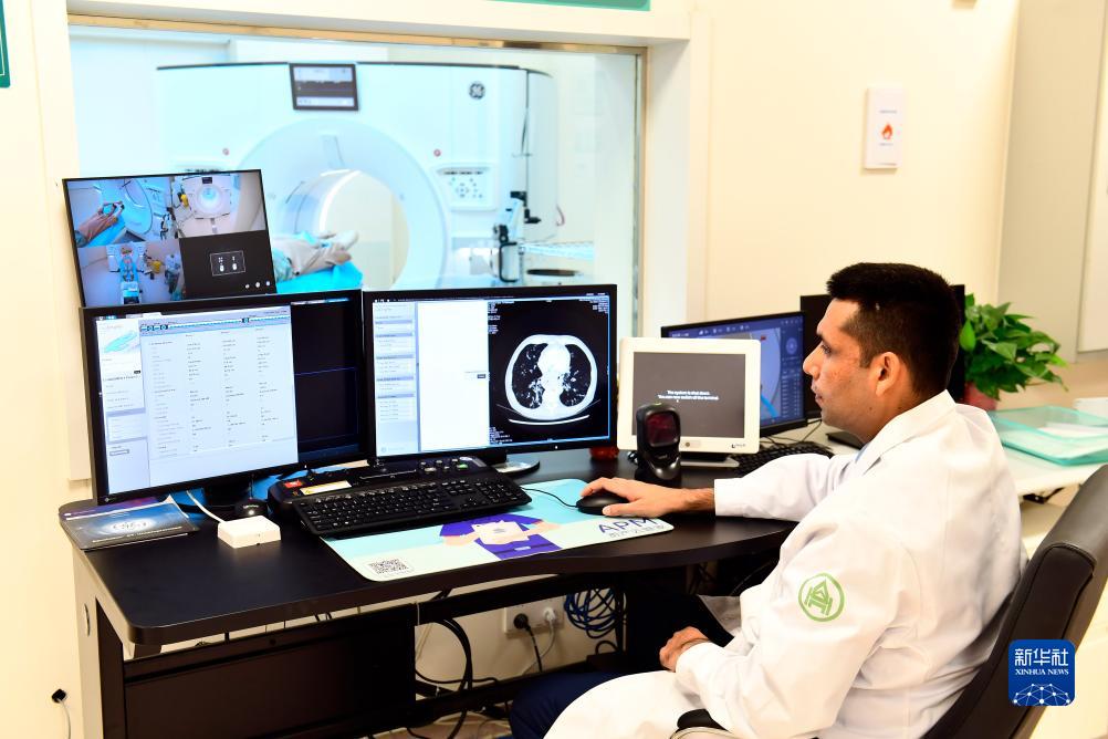10月16日,在山東大學齊魯醫院放射科,默罕默德·沙巴茲在CT設備前工作。