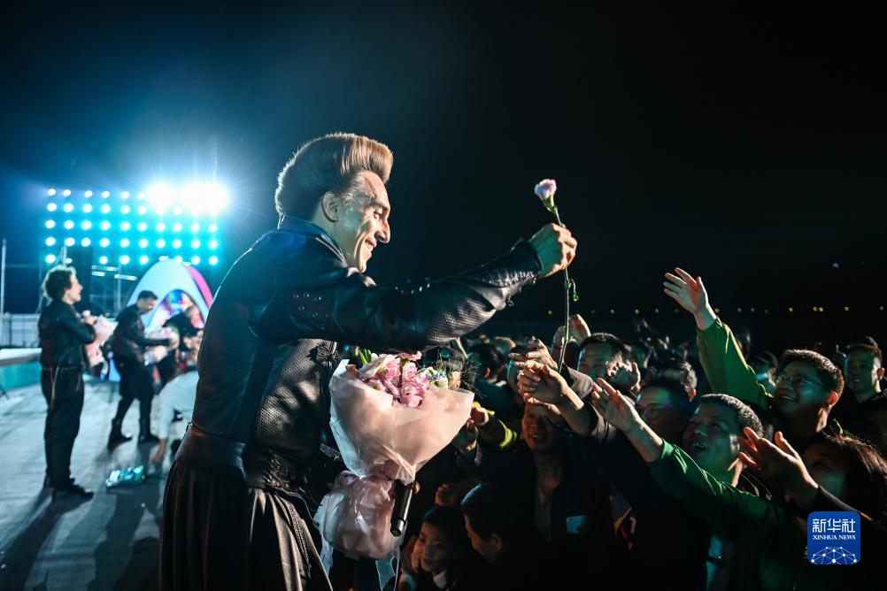 10月16日,在西安大明宮國家遺址公園,來自塞爾維亞的飛龍和巴爾干城邦樂團與觀眾互動。