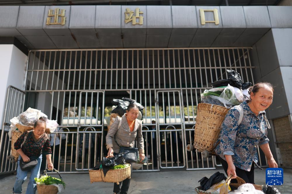 10月17日,5630次列車到達桐梓站后,村民攜帶農產品下車。
