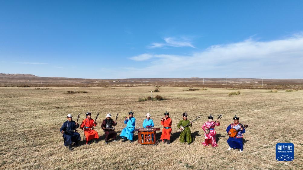 10月16日,樂隊成員在草原上進行“乃日”表演(無人機照片)。