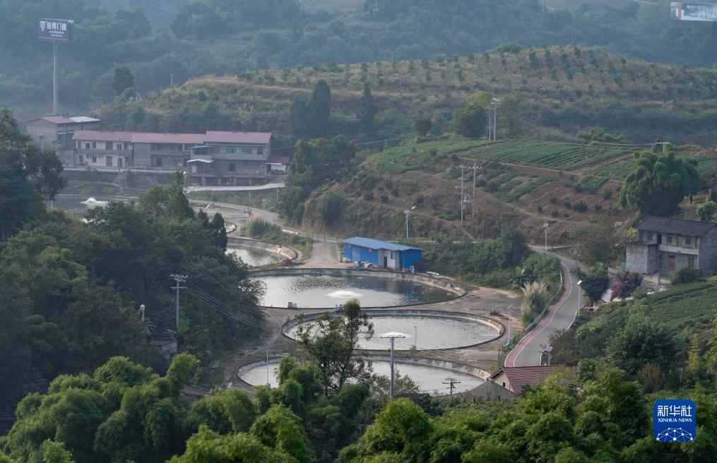 在位于四川資中縣銀山鎮的橙堡魚鄉融合發展示范園拍攝的養魚池(10月17日攝)。