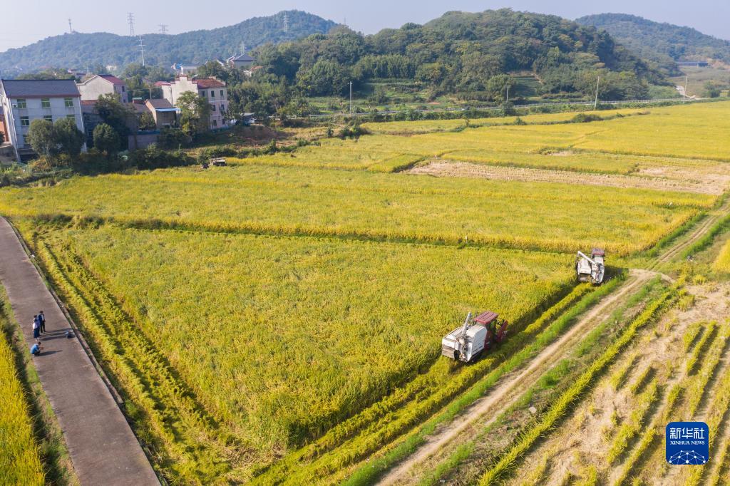 秋收時節,浙江省諸暨市陶朱街道推行“企業+合作社+農戶”專業化糧食生產加工一條龍模式,指導農戶搶抓天氣晴好的有利時機,加快秋收進度,提高秋收效率,確保糧食顆粒歸倉。