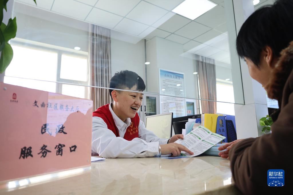 10月17日,在蘭州新區西岔園區文曲中心社區,工作人員為市民辦理業務。