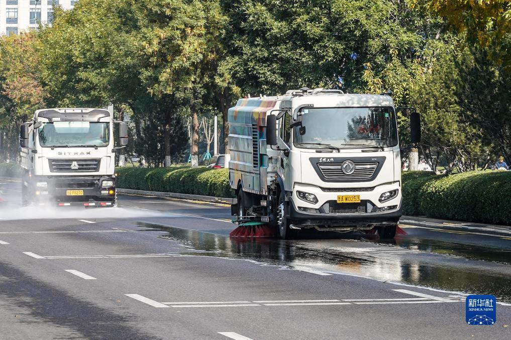 10月17日,清掃車輛在進(jìn)行機(jī)械聯(lián)合精細(xì)化保潔作業(yè)。