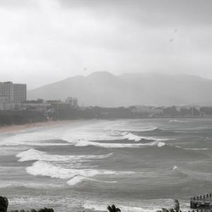 10月18日,三亞市大東海海域風(fēng)浪逐漸變大。