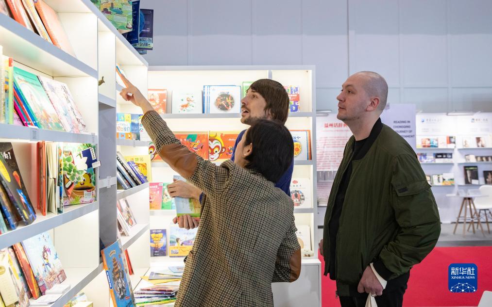 10月18日,在德國法蘭克福書展中國展區(qū),參展商向參觀者介紹中國圖書。