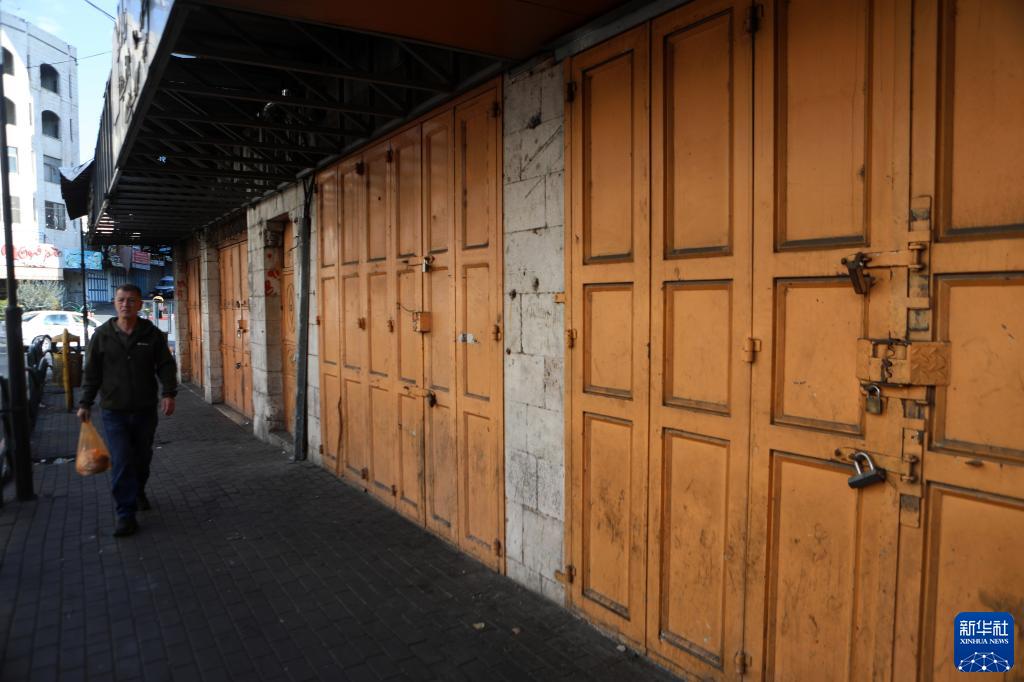 10月18日,在約旦河西岸城市希伯倫,民眾罷工抗議加沙醫(yī)院遭襲。