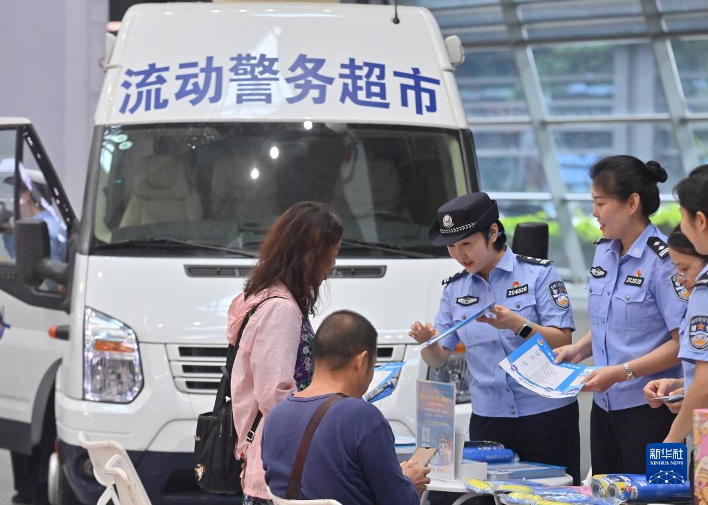 10月19日,在柳州市國際會展中心,市民在“流動警務超市”咨詢、辦理業務。