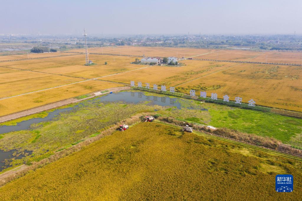 近日,浙江省湖州市吳興區東林鎮省級現代農業園區內高標準農田迎來豐收季,當地緊抓農時開展秋收活動。